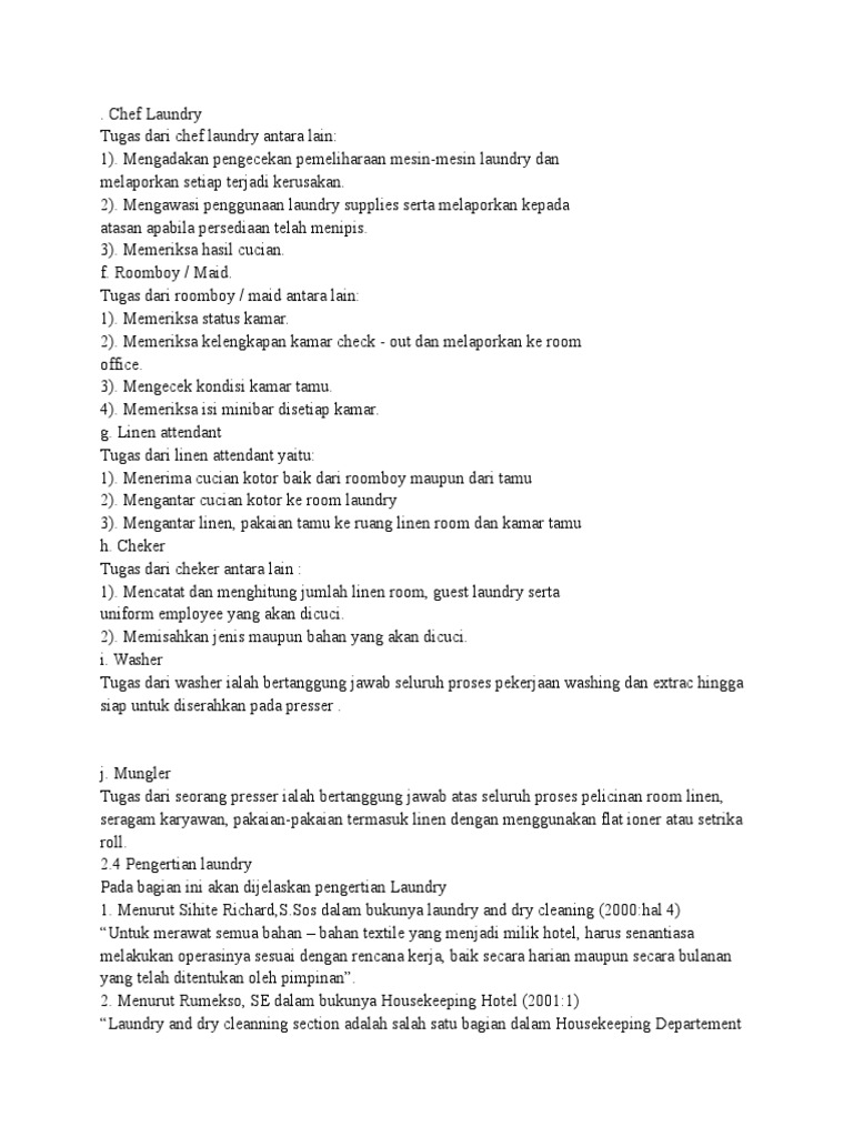 Chief linen room chief linen room adalah supervisor (pengawas) pada operasional di linen room.